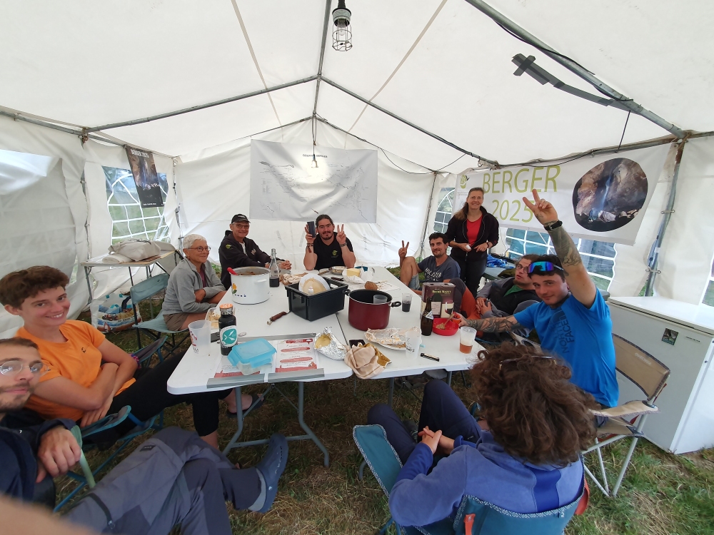 Comme en 2025, le camp de base sera installé à la Ferme des Prés Lauzés, près de Méaudre, à deux pas de la Spéléo-Tour José Mulot. Accueil en tentes ou camping-cars. Vous trouverez eau courante, toilettes sèches, douches chaudes, électricité, espace vaisselle, buvette, et des emplacements de convivialité aménagés et abrités. Aucun voisinage, sinon les animaux de la ferme Le coût du camping est de 5 euros par personne et par jour, à régler sur place. Important : Berger 2026 est un rassemblement. C'est à dire un lieu où on se rencontre. C'est un des aspects les plus enrichissants du camp. Sachez en profiter : s’il n'est pas obligatoire de venir vous installer ici pour votre séjour, cela est vivement recommandé. D’ailleurs votre présence est obligatoire la veille de votre descente pour le briefing du soir, et il faudra bien rapporter vos sacs poubelles extraits du gouffre !